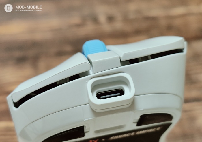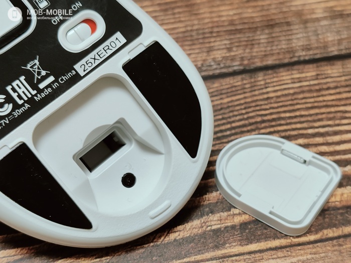 Чуть ниже сенсора располагается переключатель режима подключения, а в самом низу – отсек для хранения ресивера с магнитной крышкой.