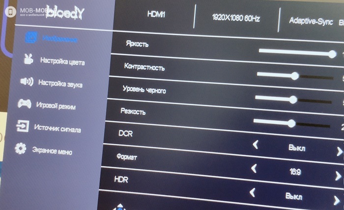 Bloody MN251F имеет 10-битную (8 бит+frc) IPS матрицу, благодаря которой обладает отличными углами обзора. Даже при самых сильных углах поворота относительно плоскости поверхности изображение на мониторе лишь слегка темнеет, тогда как в более дешевых решениях на основе TN матриц было бы практически ничего не разобрать.Для геймерского монитора плотность пикселей 90 ppi, соответствующая разрешению FHD при диагонали 24,5 дюйма – это не сказать чтобы запредельно, но вполне нормально. А вот частота обновления дисплея в 200 Гц – это уже очень и очень неплохо: многие аналоги довольствуются частотой обновления 180, а то и 168 Гц.