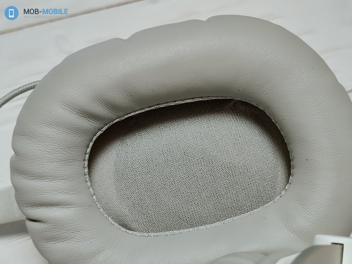 Амбушюры имеют традиционную для полноразмерных наушников овальную форму, изготовлены из экокожи, внутри заполненной наполнителем.